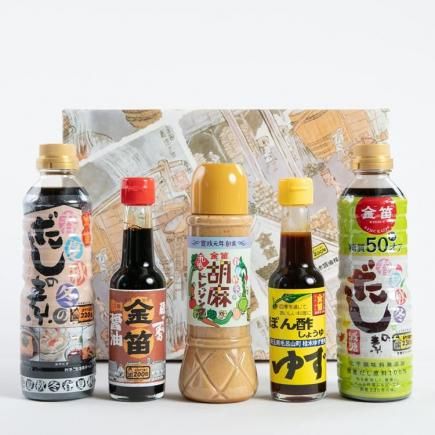 「春夏秋冬のだしの素 糖質50%オフ」や、人気の胡麻ドレッシングが入った特別ギフトです。